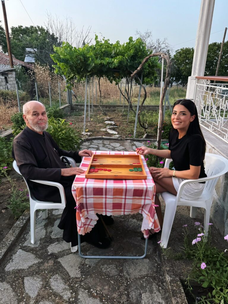 Σε μια φωτογραφία που αποπνέει απλότητα και αυθεντικότητα, η γνωστή πολιτικός απολαμβάνει ένα χαλαρό παιχνίδι τάβλι με τον παππού της, τον παπα-Βλάσση, στον κήπο του σπιτιού τους. Ένα στιγμιότυπο που θυμίζει σε όλους μας πόσο πολύτιμοι είναι οι δεσμοί με την οικογένεια και την πατρίδα.