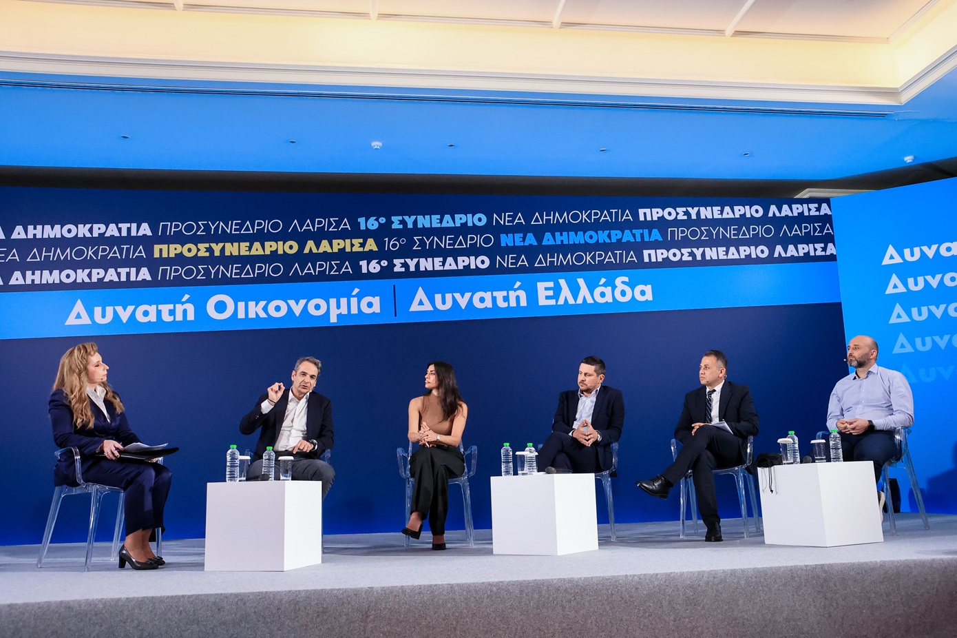 Στο πλαίσιο του προσυνεδρίου, ο κ. ητσοτάκης συνομίλησε με τη κ. Ράνια Λάμπρου που είναι συνιδρύτρια εταιρείας τεχνολογίας, τον κ. Γιώργο Ρωμανόπουλο που είναι αγρότης, τον κ. Ευάγγελο Γκάγκο Πρόεδρο εταιρειών κατασκευών και βιομηχανικής παραγωγής και τον κ. Αλέξανδρο ΦίδηΜηχανικό Συστημάτων Πληροφορικής. Ο πρωθυπουργός ανέφερε πως έχει ξεχωριστή σημασία ότι «επιλέγουμε να μιλήσουμε για τη δυνατή οικονομία και τη δυνατή Ελλάδα στη Θεσσαλία που έχει δοκιμαστεί από τις φυσικές καταστροφές και έχει πλεονεκτήματα ώστε τα επόμενα χρόνια να απογειωθεί».